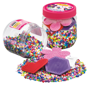 A Mini gyöngyök 2.5mm átmérőjűek, így méretüket tekintve pontosan fele akkorák, mint a Midi gyöngyök. Ezeket a gyár 10 éves kortól ajánlja, mivel a kis méret miatt a munka is nehezebb velük, ugyanakkor a kisebb gyöngyökkel sokkal részletgazdagabb képeket tudunk alkotni, mely a művészeknek nagy öröm. A Maxi gyöngyök nagyobbak, pontosan kétszer akkorák, mint a Midi gyöngyök, 10mm-es átmérővel rendelkeznek. Ezeket a gyár a kisebb gyermekeknek fejlesztette ki, így akár már 3 éves kortól is alkalmasak a játékra.